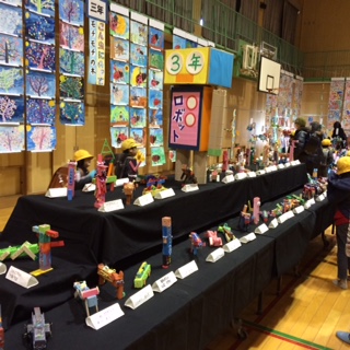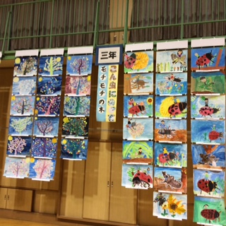 3年のコーナーは、立体作品「○○ロボット」、平面作品「モチモチの木」「昆虫に乗って」です。