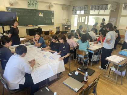 放課後には、討議会を行いました。本時の授業について、進め方やしっかりと理解させないといけないポイントなど、意見交流を行いました。最後に講師先生の指導講評をしていただきました。今後、学年ごとに研究授業を実施していきます。