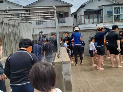 今日は、1年生・5年生・6年生のプール開きです。