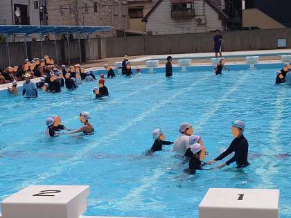 5年生も1年ぶりのプールです。先生の指示をよく聞いて、安全に活動することができていました。