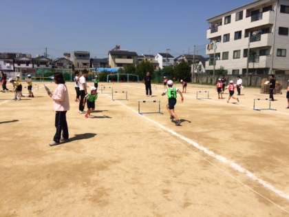 研究授業を行いました(5年 体育 ハードル走)