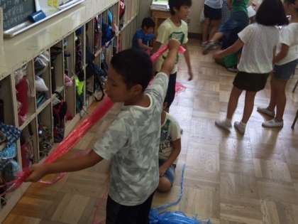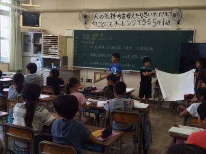 5年生は、7月26日〜28日に実施される自然体験学校に向けて、総合的な学習の時間にクラス解体した班編成で、活動の計画を立案しています。
