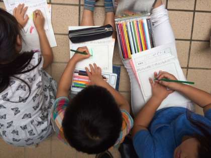 生活科の学習で、アサガオの観察をしています。観察した様子を絵や文章で書きとめていきます。