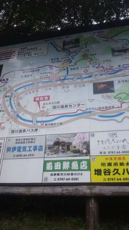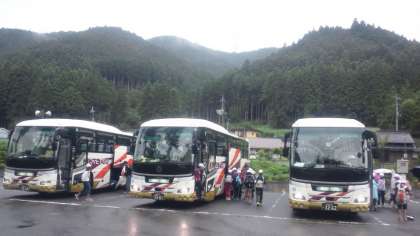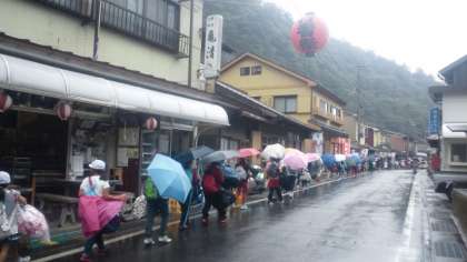 11時10分ごろ、洞川温泉センターに到着。現地は雨の模様で、予定を変更して宿舎へ向かいます。