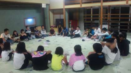 キャンプファイヤーの出し物(スタンツ)の練習に取り組んでいます。