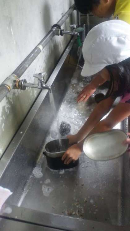 おいしいカレーライスを食べ終えて、次はあと片づけです。