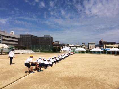どの学年も心を一つにするために気合を入れて練習をしていました。学年の先生から、一人ひとりが最高の笑顔で最高のモチベーションで演技・競技ができるように話がありました。