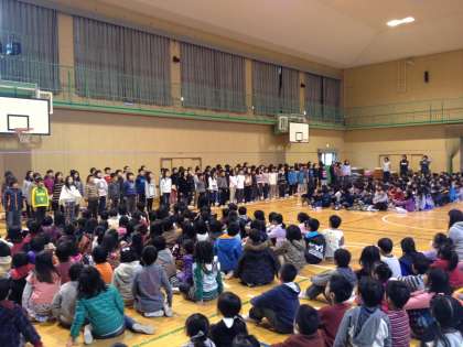 12月12日(木)本日の児童集会は3・4年生合同の音読発表会でした。3年生は全員で声を合わせて「寿限無」他3つの詩を暗唱しました。4年生は草野心平さんの「春のうた」他3つの詩をクラスごとに暗唱しました。3年生も4年生もみんな一生懸命に声を出して頑張っていました。