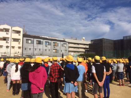 10月11日(火)の全校朝会で、教育実習生の2人がお礼のあいさつをしました。