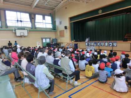 「まつぼっくりまつり」とは、1年生を「まつぼっくり」に例えて、地域の高齢者の方といっしょにふれあい、楽しい時を過ごす祭りのことです。