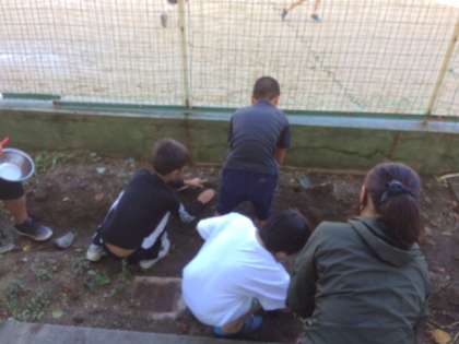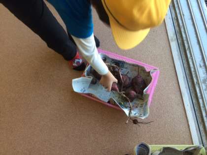 10月17日(月)、プレイルームの横の畑で栽培している「さつまいも」を掘りました。