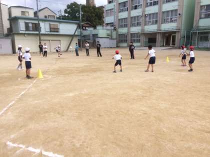 3年1組の学級で、体育の「ならびっこキックベースボール」の授業でした。