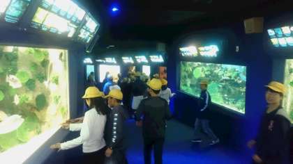 グループで館内を見学しているところです。