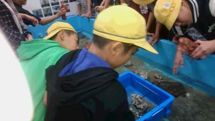 体験コーナーでは、海の生き物に触れるコーナーがあり、みんな大はしゃぎです。