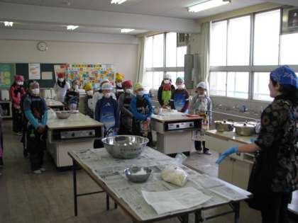 2月18日(火)今日は5年生が、みそづくり体験を行いました。保護者の方々の協力もあり、子どもたちは皆初めての体験に楽しんで取り組んでいました。今回作ったみそは、6年生の調理実習で使う予定です。子どもたちも来年の実習を楽しみにしています。