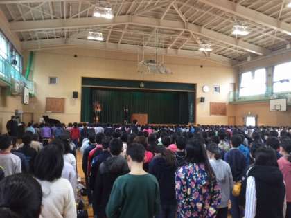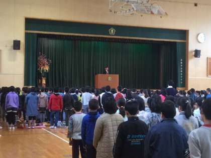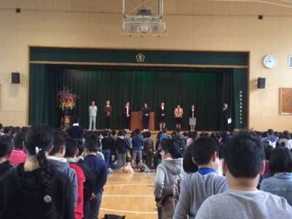 また、3月で去っていかれた先生の紹介、新しく来られた先生の紹介がありました。 最後に、子どもたちの待ち望んでいた担任の発表でした。
