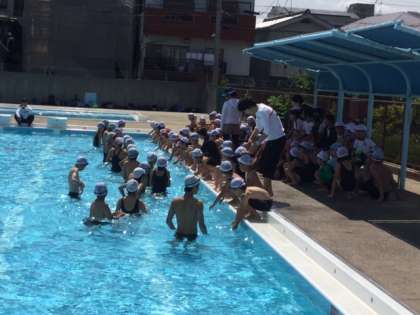 安全に楽しくプールで学習するための話を学級で行った後、プールに入りました。