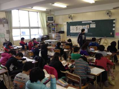 3月13日(木)今日は、3年生が食育の授業を体験しました。栄養教諭の黒崎先生から、おやつについてのさまざまな知識を学びました。