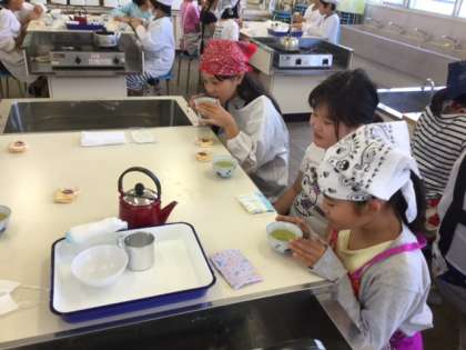 5年生は家庭科の学習でお茶の入れ方の学習をしました。