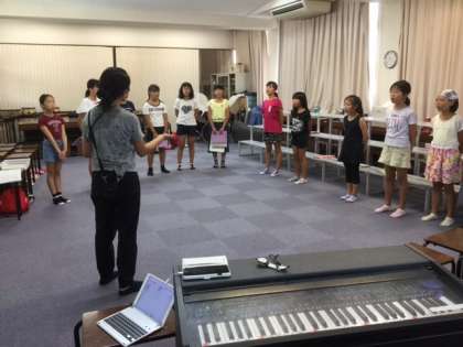 課題曲「いまだよ」と自由曲「シーラカンスをとりにこう」を練習で、毎日きれいな歌声を響かせています。