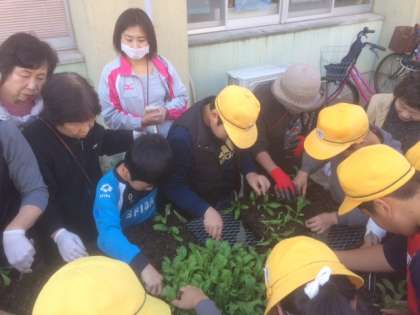 11月6日(月)、育てよう委員会と安立地域の方々とによる種から花を育てる運動を行いました。