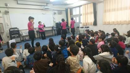 手話や指文字、「友だちになるために」の手話歌を教えていただいた後、スタッフのみなさんから手話コーラス「flower」のプレゼント。キッズ手話で学んでいる子どもたちも参加して手話を披露してくれました。