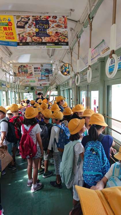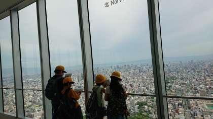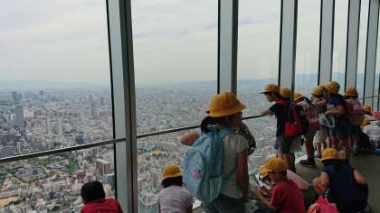 大阪市の様子を学習するために、阪堺電車に乗ってハルカスへ行ってきました。初めてハルカスの展望台に上った子も多く、エレベーターでもう大盛り上がりでした。