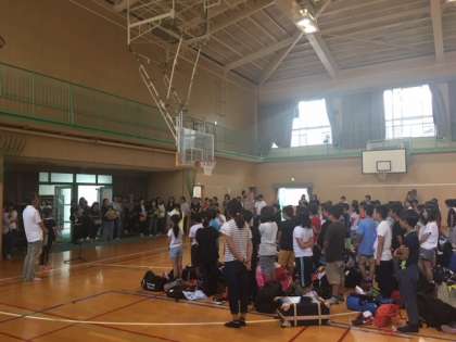 16時35分、ハチ高原から5年生が学校に帰って来ました。