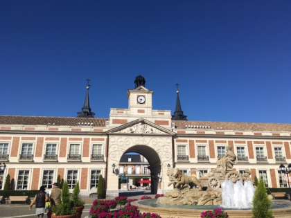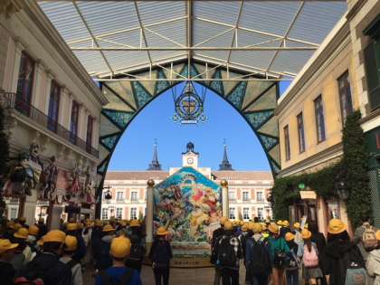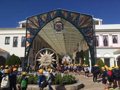 9時30分、スペイン村のゲートが開きました。いよいよ、楽しみにしていた「スペイン村」、活動開始。真っ青な大空の下、班ごとにスタートしました。
