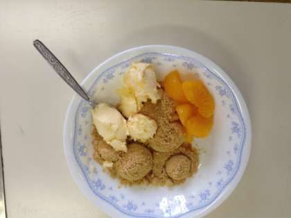 トッピングには、アイス・きな粉・みかんを盛り付けて食べました。