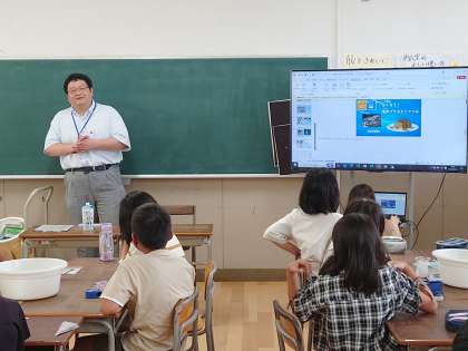環境局の方々にゲストティーチャーに来ていただき、水環境についての学習をしました。