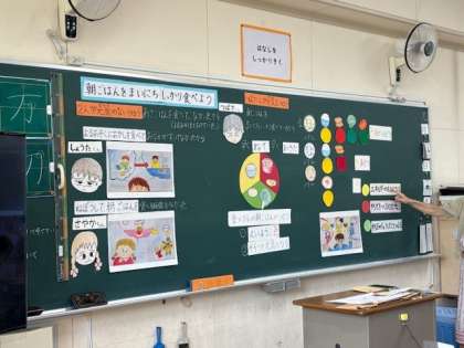 栄養3色そろったら金メダルの朝ごはん、2色なら銀メダル、1色なら銅メダルの朝ごはんと紙芝居では紹介しています。3色そろわなくても朝ごはんは食べてくることが大切です。