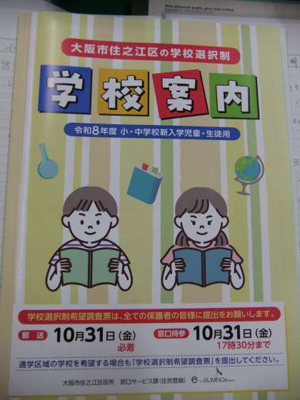 新一年生の保護者様のご自宅に住之江区の学校選択制の学校案内が届いていることと思います。その中に、学校説明会の日程が9月10日(水)と記載されております。