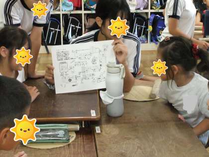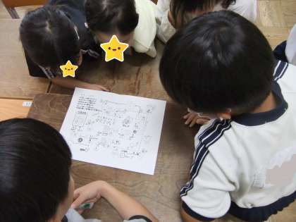 ペア学年の各グループで集まり、どのお店を回ろうか順番を決めました。
