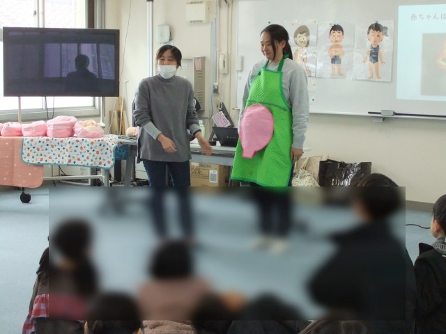 赤ちゃん人形や妊婦さんの模型を用いて、子どもたちにわかりやすくお話をしてくれました。