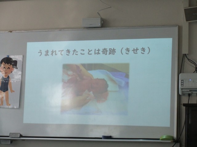 赤ちゃんの誕生についてお話を聞き、自分たちのいのちの大切さについて考えました。