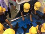 エイや伊勢エビ、様々な海の生き物に触れるコーナーでも、たくさんの歓声と笑顔があり...