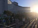 6時45分、起床。 2日目の活動が始まりました。 7時、朝の会。宿舎前の駐車場に...
