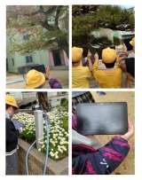 4年生が理科の学習で小運動場の観察をしています。 小運動場の桜や笠松、花壇の...