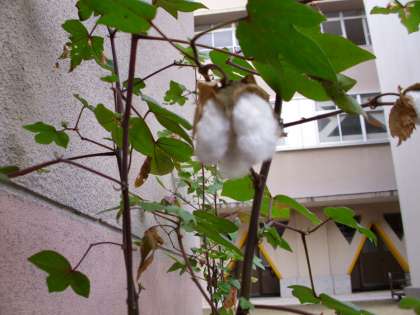 きれいな花が咲くと、実がつき、わたがでてきます。
