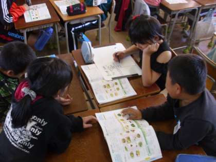 続いて高学年のようすです。4年生は社会・5年生は国語・6年生は家庭科の学習に取り組んでいました。久しぶりの学校での学習活動でしたが、児童は積極的に学習に励んでいました。