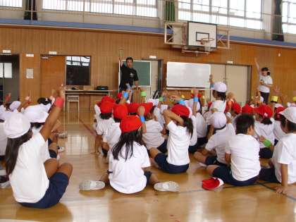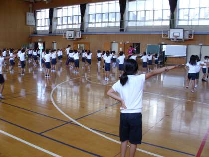 昨日に引き続き、今日も運動会でする演技の練習をしています。