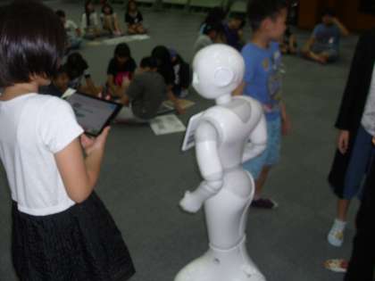 子どもたちは初めてのプログラミング作業に試行錯誤しながらも、ペッパー君と一緒に楽しく学ぶことができたようです。