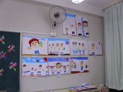 1年生は日曜日に行われた運動会の絵を描いています。自分の思い出に残っているシーンを一生懸命画用紙に描いていました。
