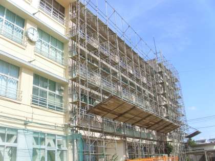 現在、校舎の外壁工事、トイレの改修工事、いきいき教室改修工事、給食調理室改修工事、LAN改修工事をしています。中には2学期以降も引き続き行われるものもあります。児童が今まで以上に快適に過ごせることができるように改修していただいています。完成が楽しみですね。