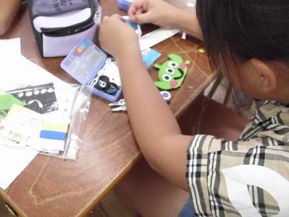 1学期から学んでいる、裁縫の学習をいかして、自分でデザインをしたマスコットを縫ったり、張り付けたりしていました。