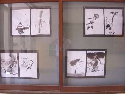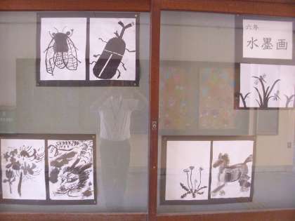 また、6年生の水墨画も掲示されています。竜や、馬、植物など様々な題材を子どもたちは墨の濃淡や、線の太さを工夫をして描いています。