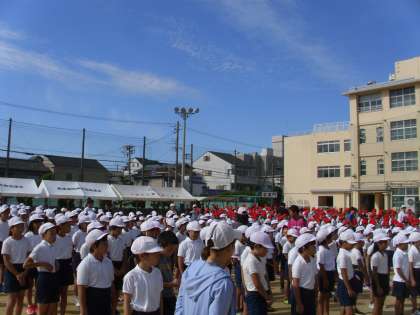 今日は、入場行進から、開会式、準備体操の練習を行いました。