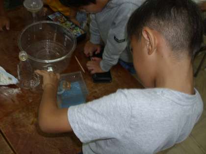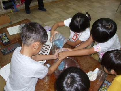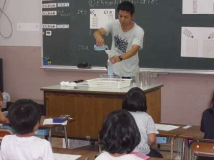 子どもたちは、実際に水を移し替えていく中で、自分の予想があっているのか確認をしながら楽しく取り組んでいる姿が見られました。