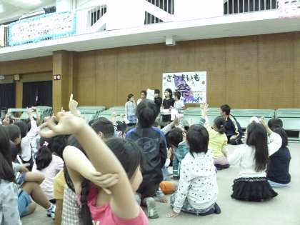 今日2年生は「さつまいも祭(フェス)」で芋掘りをして収穫したさつまいもを食べました。最初にゲームやクイズをしてから、グループに分かれてみんなでさつまいもをいただきました。